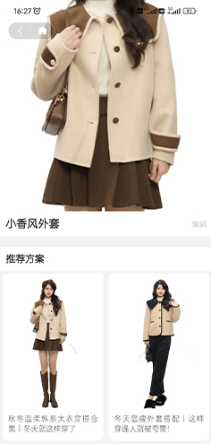 根据您选择的衣物,为您推荐相识的穿搭方案。